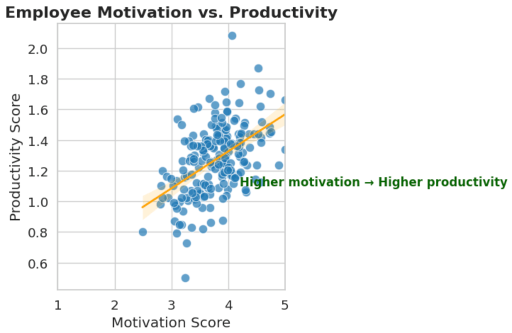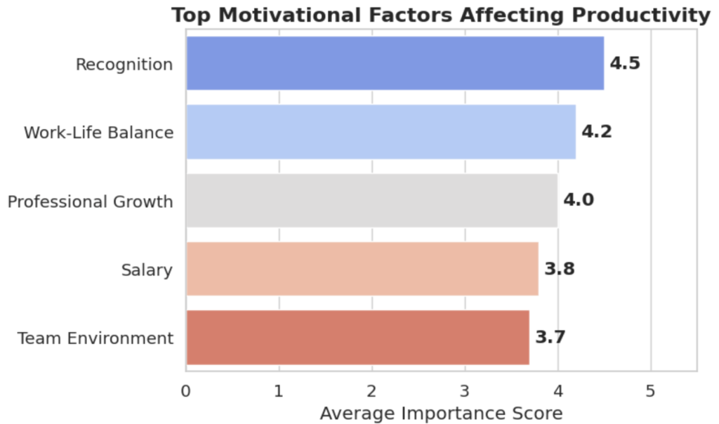 This project analyzed survey data from 200 employees to identify the key factors affecting workplace motivation and productivity. Using statistical analysis, we explored relationships between employee satisfaction, engagement, and productivity metrics. The goal was to provide actionable recommendations for improving workplace performance.