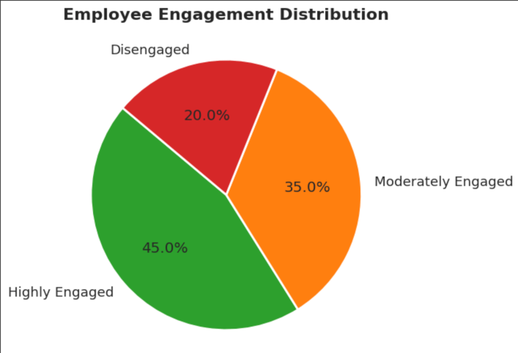 - Highly engaged employees reported 20% higher productivity than disengaged employees.